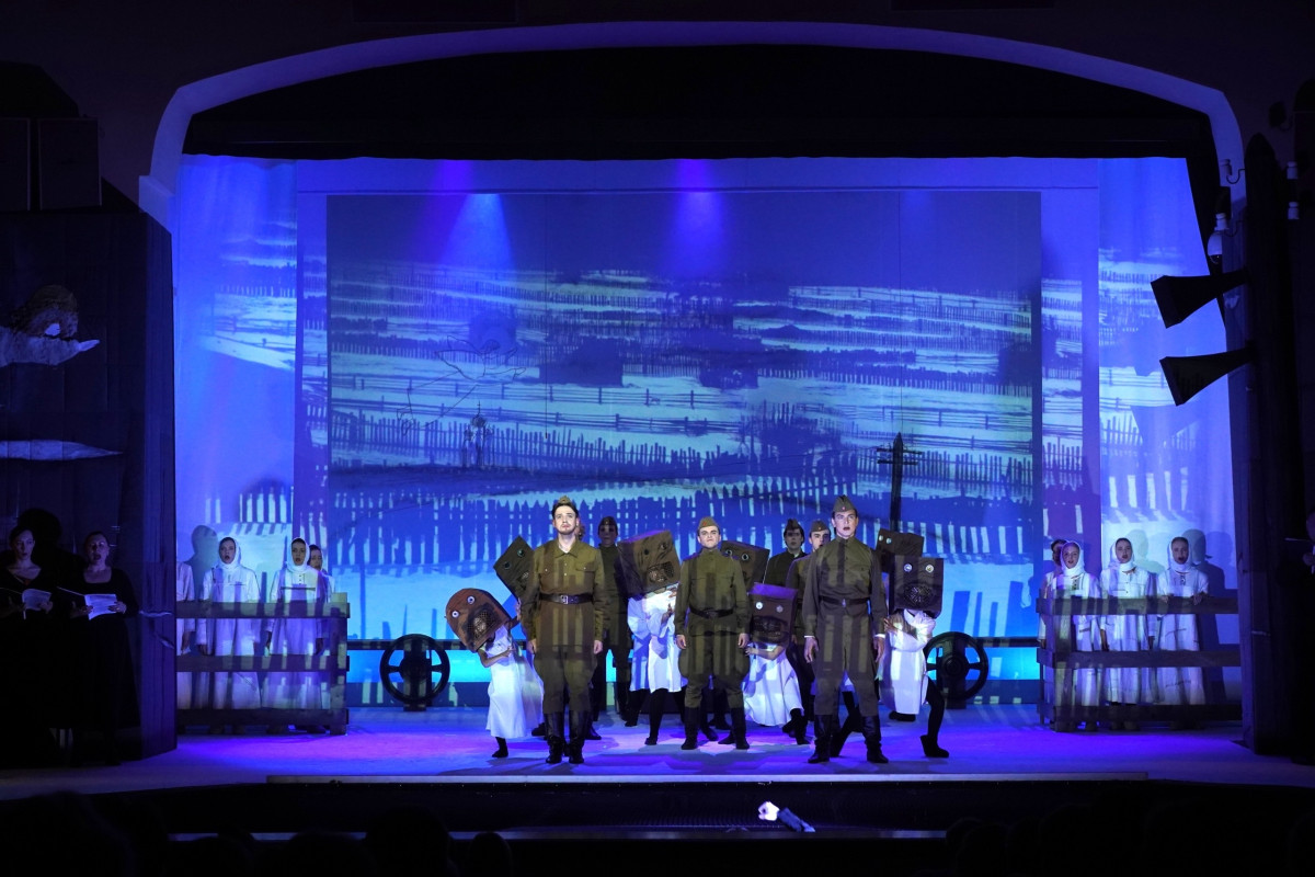 7, 8 мая и 22 июня в 7 часов вечера будет представлен спектакль-посвящение «Военные письма». Он создан по знаменитой вокально-симфонической поэме Валерия Гаврилина на слова Альбины Шульгиной. В него также вошли фрагменты хоровой симфонии-действа «Перезвоны» — вершины творчества композитора.